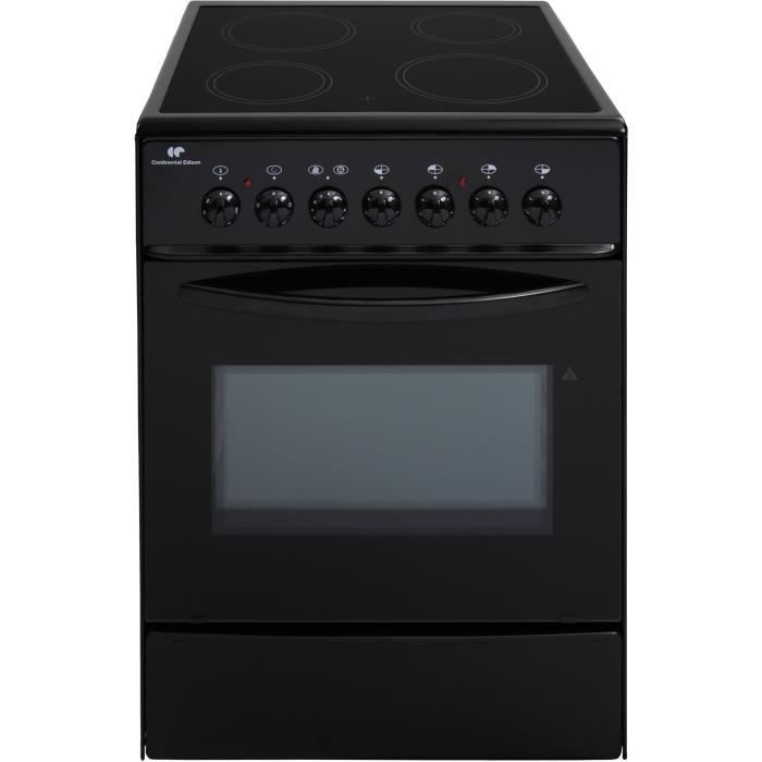 Cuisinière table vitrocéramique- 4 foyers-1700w- Four électrique- Catalyse-61L-A-L60XH85cm-Noir CONTINENTAL EDISON CVMC6060B –