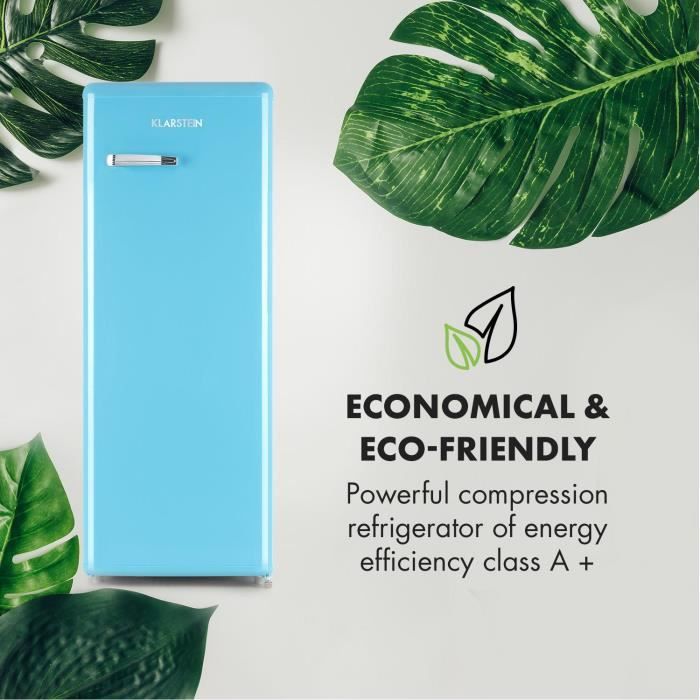 Réfrigérateur Klarstein Irene XL – grand volume : 242 Litres – 5 clayettes en verre incassable – Classe A+ – design rétro bleu